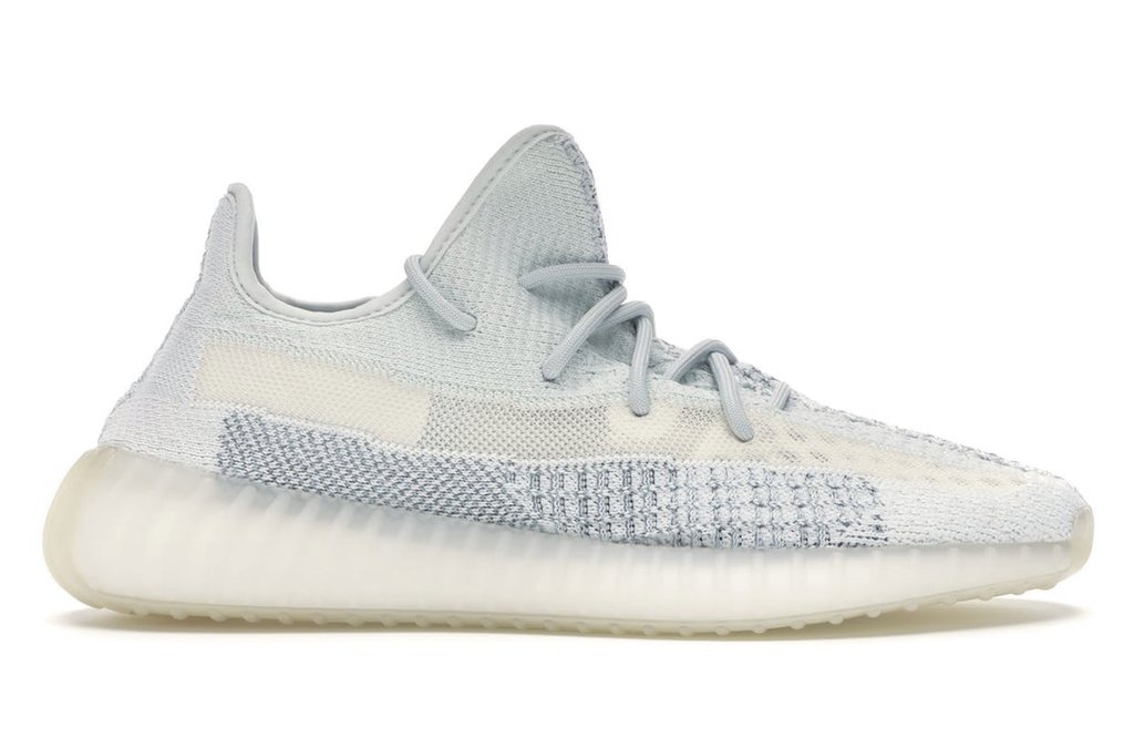 Yeezy 350 cloud white reflective. Signature Yeezy 350 V2 stripes on the mid-panel are featured in translucent cream white while the airy blue ribbed rubber midsole that houses Boost foam cushioning another favorite among fans of the Yeezy Boost 350 completes the look of this design. The adidas Yeezy Boost 350 V2 Cloud White Non-Reflective combines shades of cream and bluish-white to recreate the hue of a fluffy cloud. Instead of separate overlays the upper has the appearance of a single stitched-together piece.